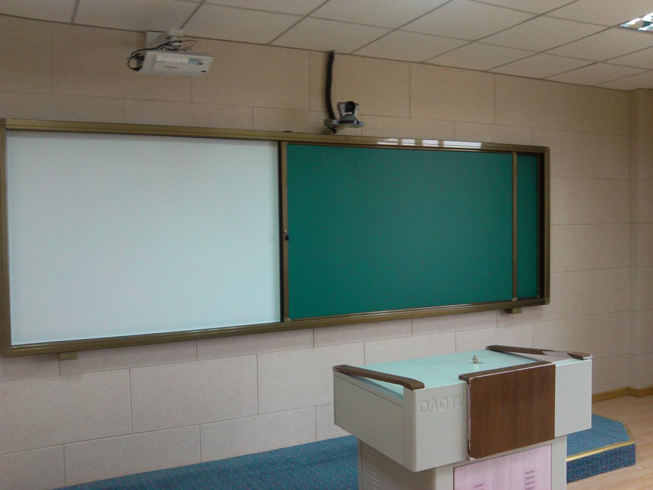 2012年暑假期间,录播室正式开工建设。在整个施工过程中,实训中心技术人员全程跟进,从教室装修、设备安装调试到试录播,认真审查,严格把关。录播室于9月1日全部安装调试完毕,目前已投入使用。该套系统最大的特色在于既可实现全自动录制课程,也可以进行手动导播录制,还可以通过校园网实现远程录制,能够满足不同要求、不同环境下的课程拍摄任务。